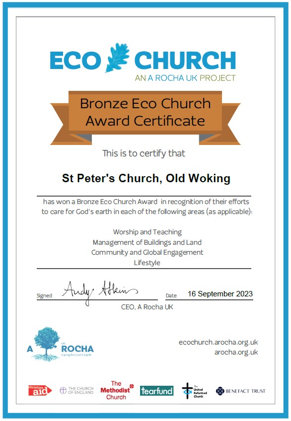 All threee churches in the parish are Bronze level eco-churches, certified through A Rocha's eco-church scheme. Our environment team meets 2-3 times a year and works across the parish to look at environmental issues related to our church buldings, land, worship and community.